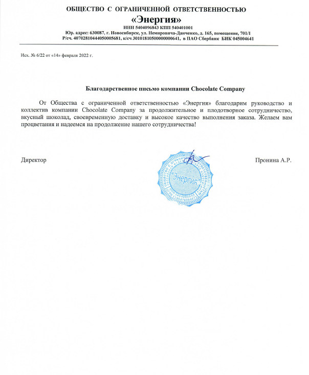 10.3. В случае выявления неточностей в персональных данных, Пользователь может актуализировать их самостоятельно, путем направления Оператору уведомление на адрес электронной почты Оператора info@chocolate-comp.com с пометкой «Актуализация персональных данных».
