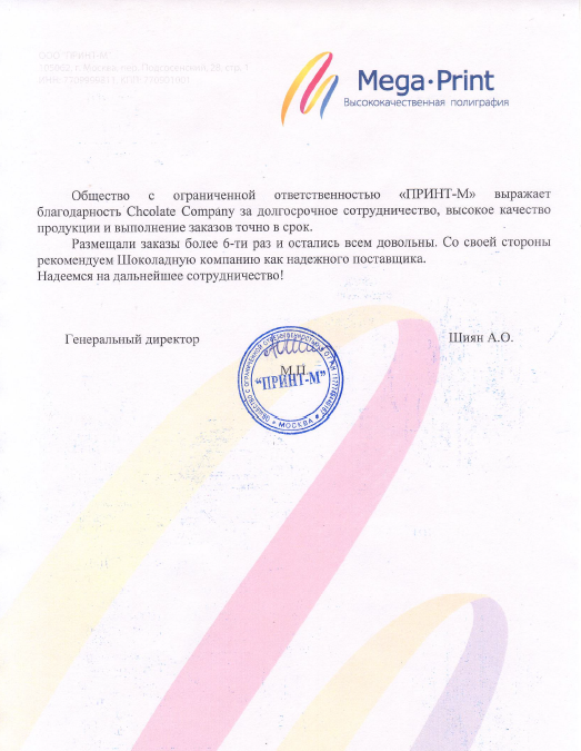 7.2. Также Оператор имеет право направлять Пользователю уведомления о новых продуктах и услугах, специальных предложениях и различных событиях. Пользователь всегда может отказаться от получения информационных сообщений, направив Оператору письмо на адрес электронной почты info@chocolate-comp.comс пометкой «Отказ от уведомлений о новых продуктах и услугах и специальных предложениях».